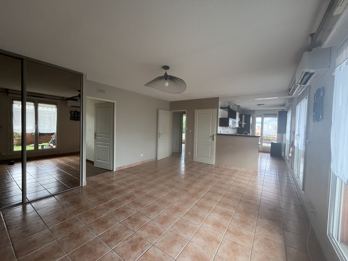 Niché au dernier étage 3/3, avec vue surplombante découvrez ce T4 d'environ 80 m² + terrasse de 85 m². Entrée sur séjour ouvert sur cuisine équipée, 3 chambres, salle de bains, WC. Double vitrage, chauffage individuel électrique + climatisation réversible. Résidence fermée avec un garage au sous-sol.